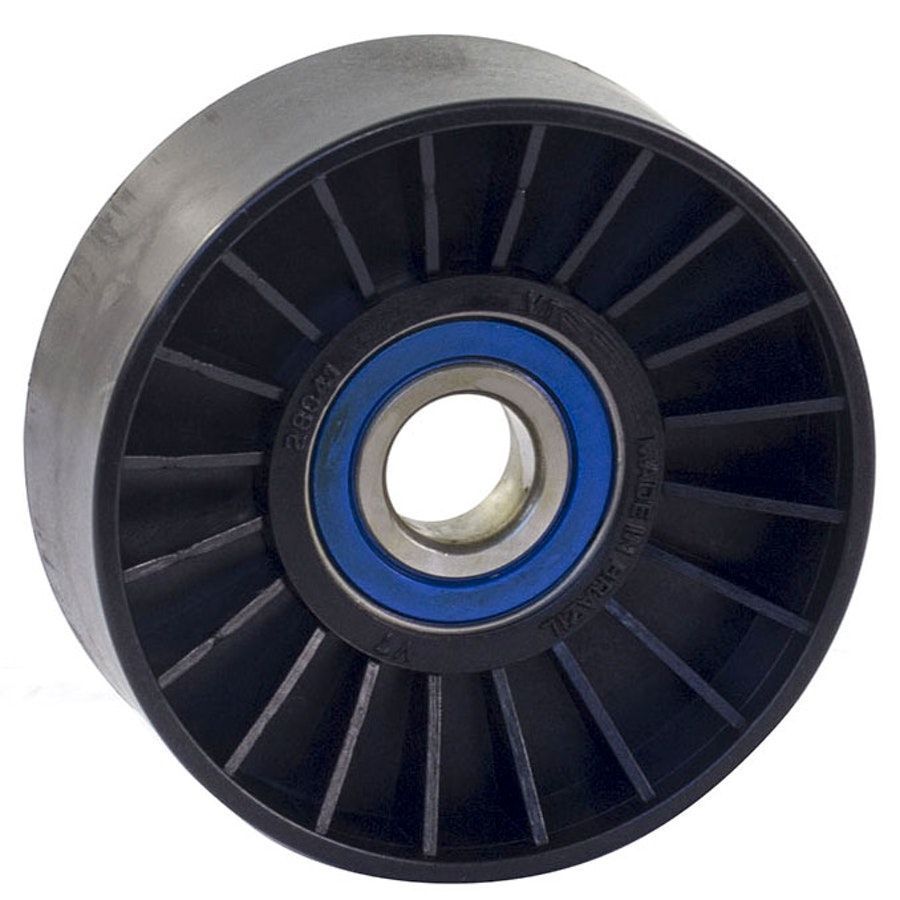 The belt tensioner pulley helps maintain proper tension in the engine's belts, ensuring they operate smoothly and effectively, reducing wear and improving performance.