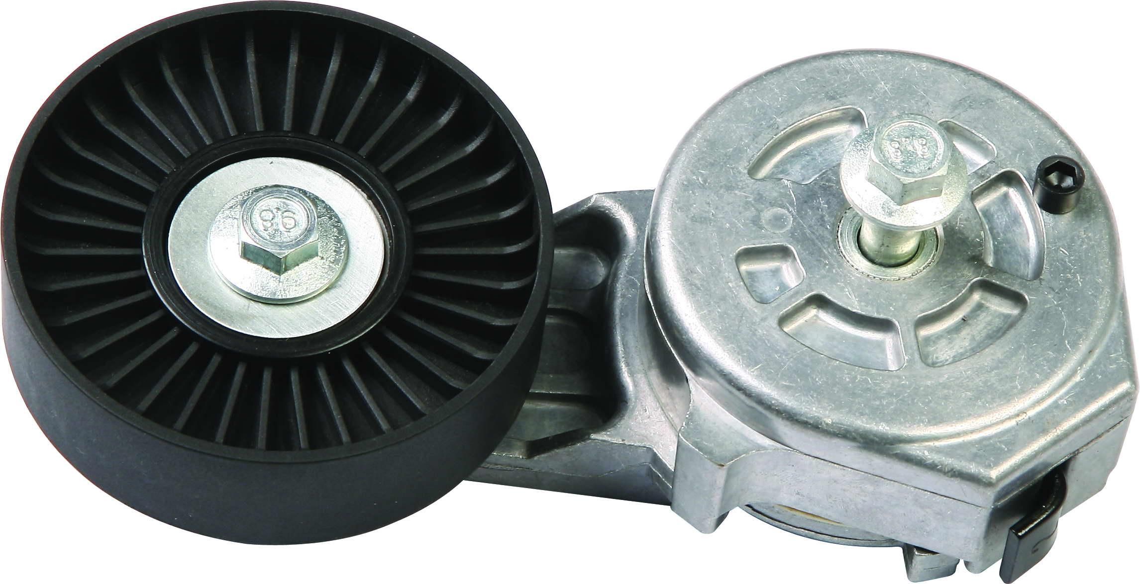 The belt tensioner pulley helps maintain proper tension in the engine's belts, ensuring they operate smoothly and effectively, reducing wear and improving performance.