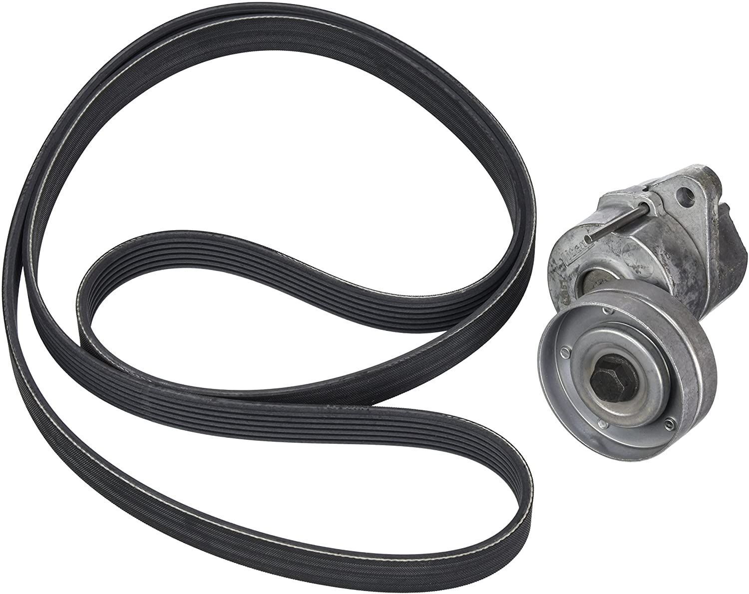 The serpentine belt kit includes a multi-ribbed belt and necessary components to drive multiple engine accessories. It ensures proper tension, smooth operation, and improved efficiency.
